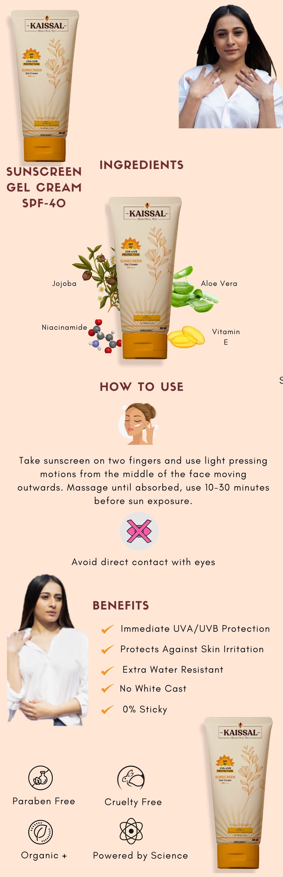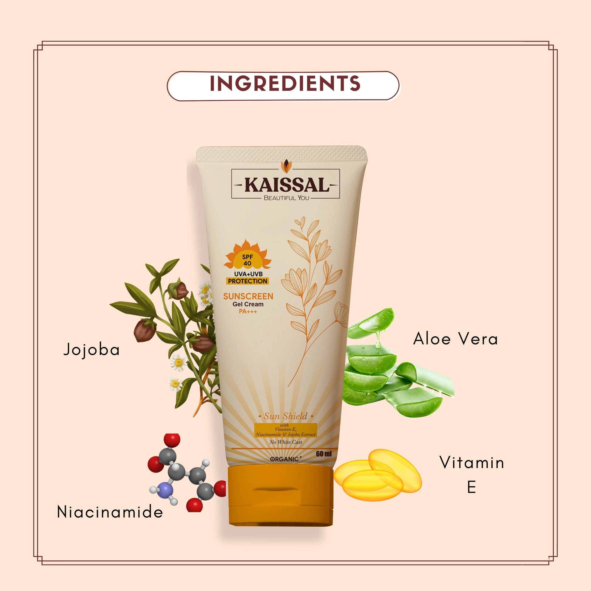 Sun's out, but your healthy glow stays in! Our SPF 40 Sunscreen Gel Cream with PA+++ rating locks in moisture and shields your skin from harmful rays. Enriched with rejuvenating Niacinamide, it not only enhances skin texture but also promotes a healthier complexion. Dive into a pool of hydration with the soothing benefits of Aloe Vera and Jojoba extracts, ensuring your skin stays supple and replenished. With its formidable broad spectrum SPF 40 defense, your skin is cocooned in protection, ready to embrace each adventure with resilience and vitality.