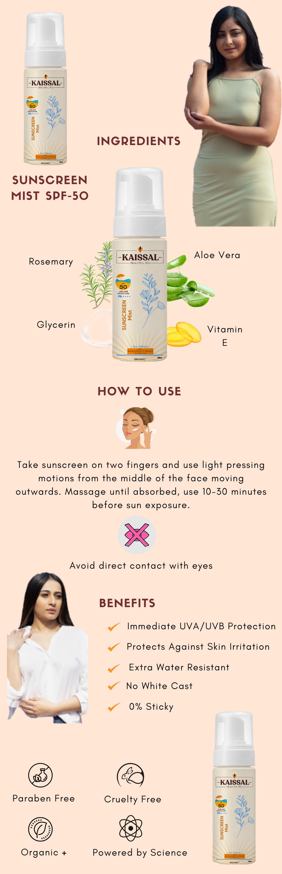 Ans: Our Sunscreen Mist is formulated with moisturizing ingredients to keep your skin hydrated and smooth, preventing dryness while offering sun protection.